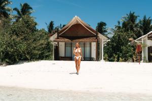 Cinnamon Hakuraa Huraa Maldives boasts one of the largest shallow lagoons and provides a picturesque backdrop for photoshoots. For couples, a bottle of wine and fruit basket awaits in their overwater bungalow or sandy beach villa. Indulge in barefoot luxury and walk on the water at the resort's romantic beach or enjoy a mouth-watering meal. Couples can also enjoy a peaceful session of fishing, dolphin watching, or kayaking out at sea. The Platinum Island at Cinnamon Hakuraa Huraa Maldives is an adult-only haven and a perfect retreat for honeymooners. It features a private pool, the Manzaru Restaurant, Vevu Bar and Lounge, and sumptuous Platinum Beach Bungalows. The resort offers plenty of spa treatments, including full-body massages and foot rubs, to pamper and relax couples. The serene atmosphere is perfect for unwinding, whether reclining on a white sandy beach by a crystal-clear lagoon or experiencing one of the largest shallow lagoons in the Maldives.